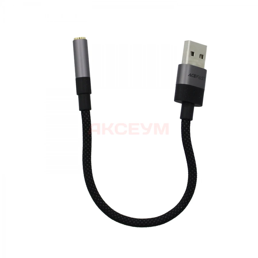 Адаптер USB - 3.5 мм Jack Acefast J13 (оплетка нейлон) черная